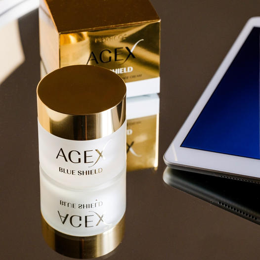 Η κρέμα Agex Blue Shield μειώνει τα σημάδια γήρανσης και προστατεύει από το φυσικό φως και το φως από τις συσκευές. Πρόκειται για μία γρήγορα απορροφήσιμη κρέμα gel, εμπλουτισμένη με πολύτιμα συστατικά όπως μικρο-εγκλωβισμένη ρετινόλη και ακετυλο εξαπεπτίδιο-8, που μειώνουν τις γραμμές έκφρασης και χαρίζουν ελαστικότητα και λάμψη. Οι πρωτεΐνες από βακτηριακή ζύμωση προστατεύουν το δέρμα από το UV, IR και μπλε φως.
